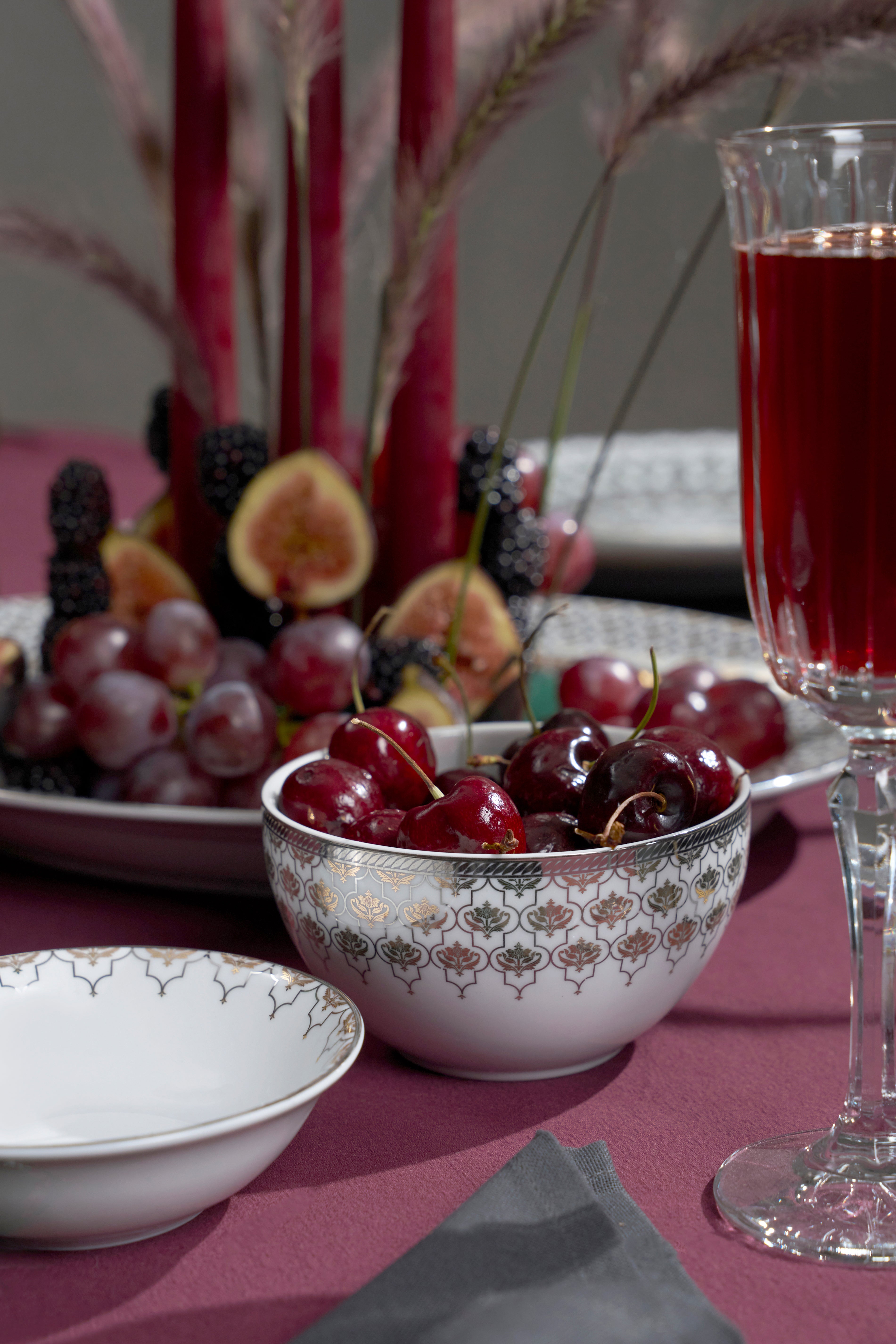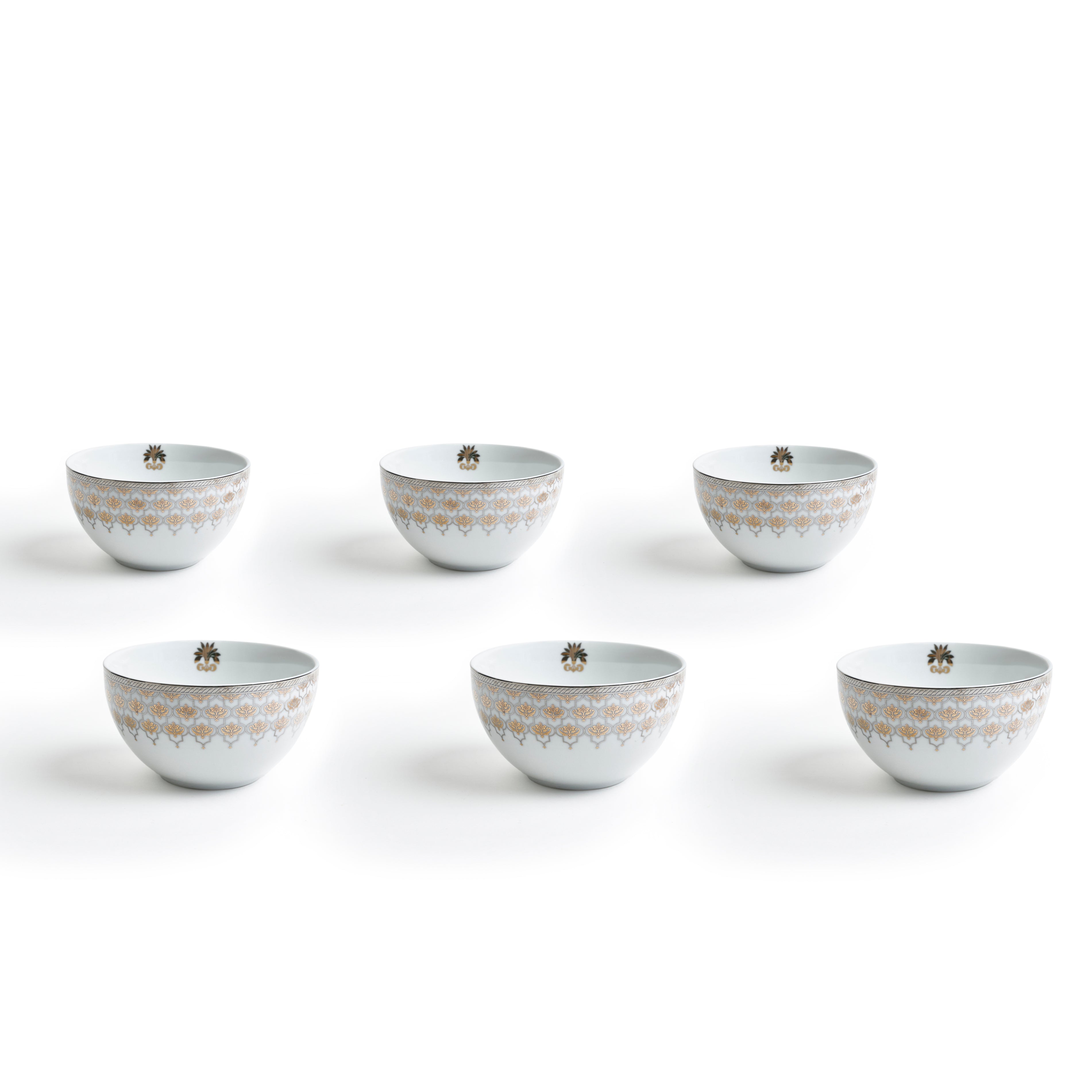 Set of six 4.5" deep porcelain bowls, showcasing intricate gold detailing and platinum lining - perfectly complementing each other to transfer every meal into a royal experience. These bowls are perfect soup bowls that can also be used for serving stews and broths, adding a touch of warmth and elegance to every meal.